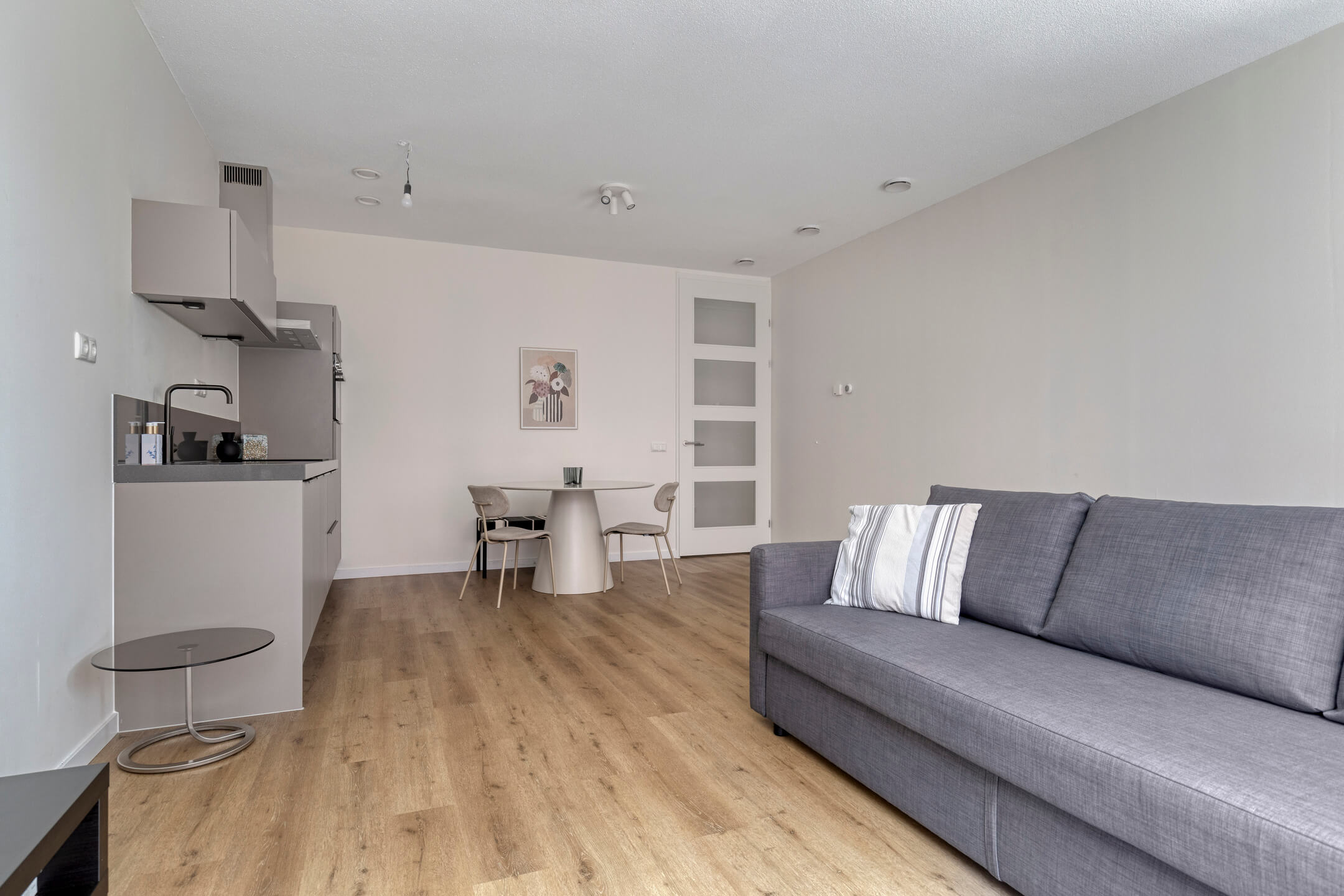 Dit moderne appartement is per direct beschikbaar en biedt woonplezier door zijn fijne indeling met een open keuken die is uitgerust met de nieuwste apparatuur. De ruime slaapkamer, luxe badkamer, inpandige opbergruimte en buitenruimte van circa 5m2 zorgen voor ultiem comfort.