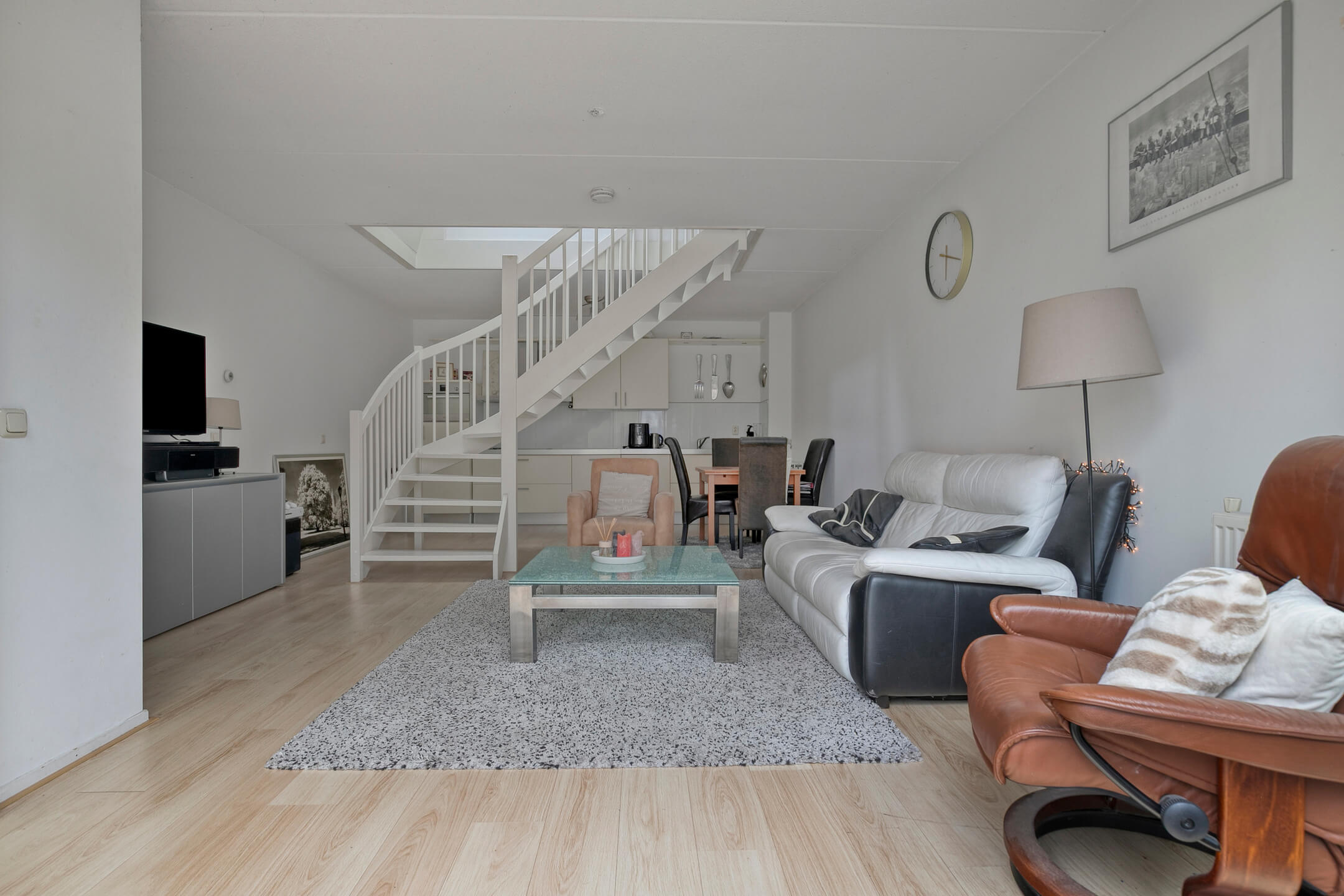 De woonkamer is licht en ruim, met een prettige indeling, grote raampartijen en dubbele openslaande deuren naar de veranda. Hierdoor vloeien binnen en buiten mooi in elkaar over. De open keuken is slim gesitueerd en laat zich makkelijk aanpassen aan je eigen woonwensen.