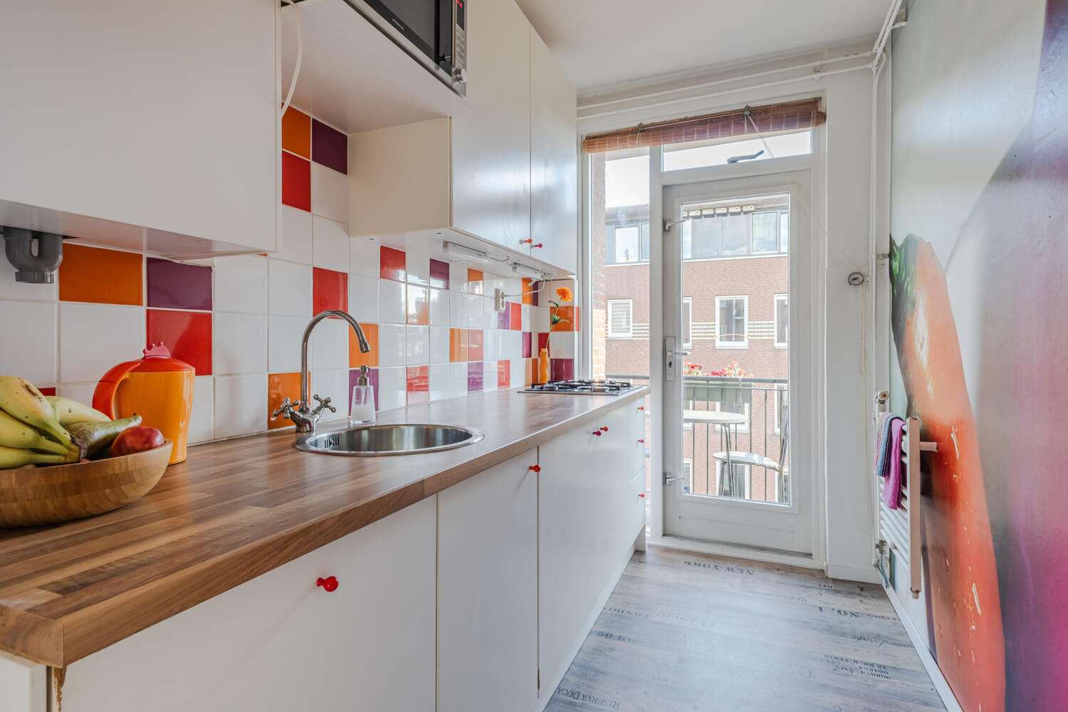 De keuken ligt apart en doet precies wat je wilt dat hij doet. Praktisch, overzichtelijk en met genoeg werkruimte. Vanuit hier heb je toegang tot het tweede balkon. Dat maakt het dagelijks gebruik gewoon net wat fijner. Altijd een plek buiten, of je nu in de ochtendzon zit of juist wat later op de dag.